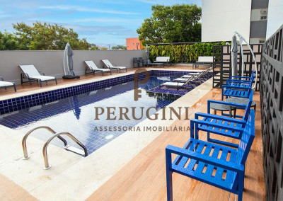 Área de lazer completa com piscina, academia, espaço gourmet, playground e mercadinho 24 horas